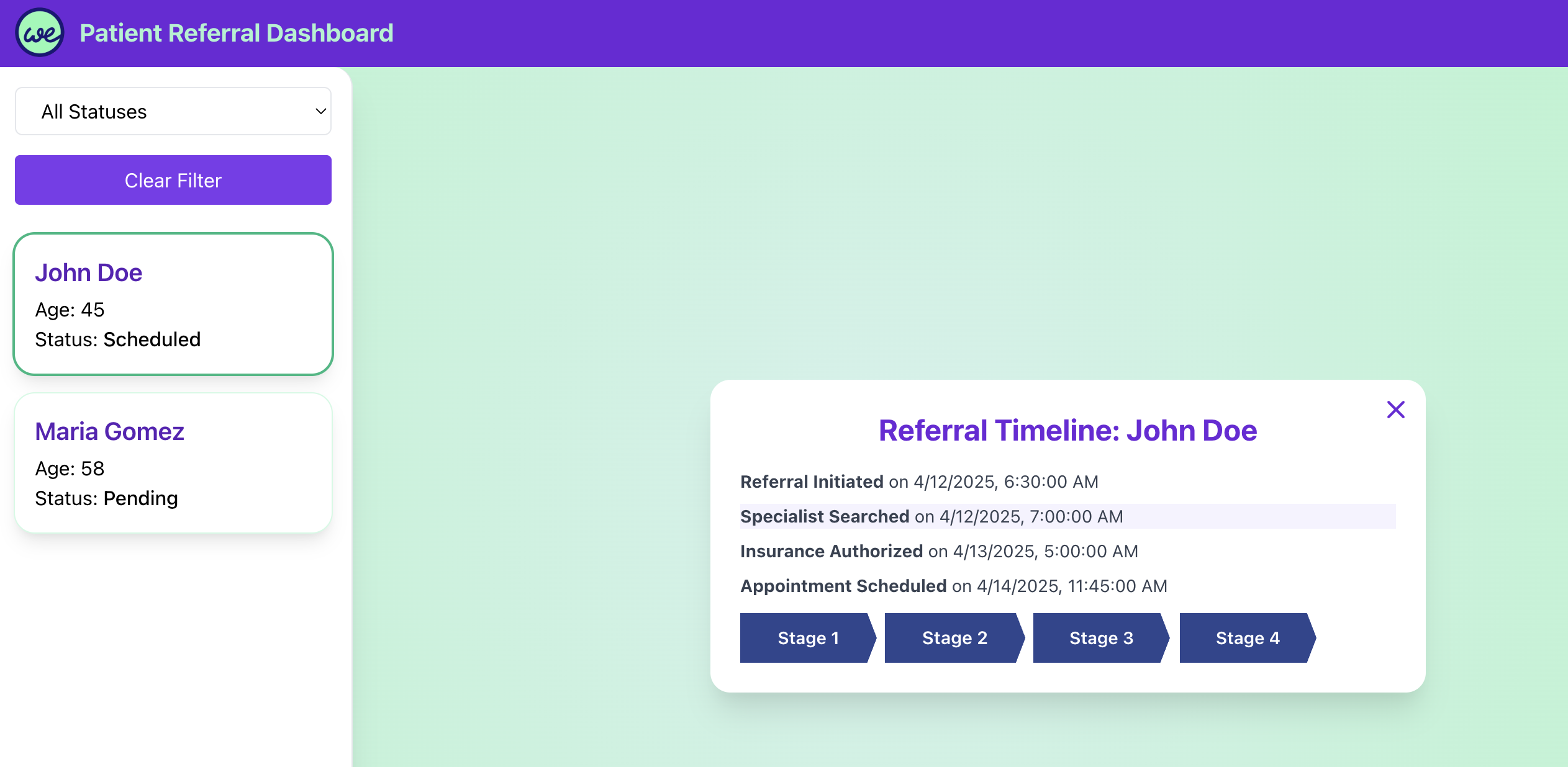 A freelance Proof of Concept (POC) project for Wekare.ai, demonstrating the intended functionality of a patient referral dashboard.